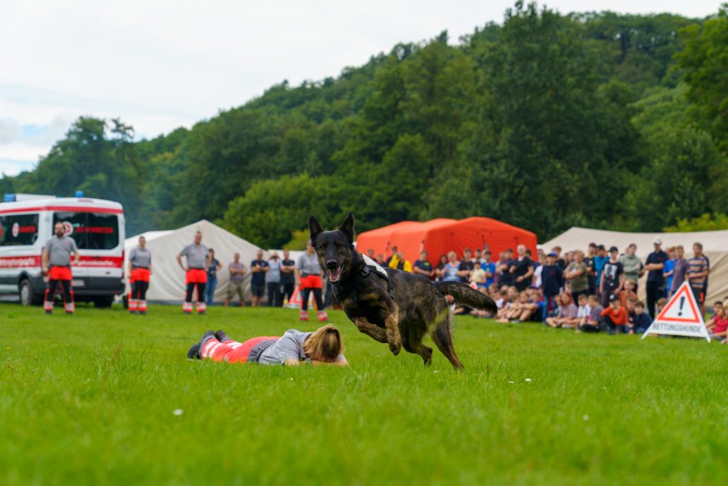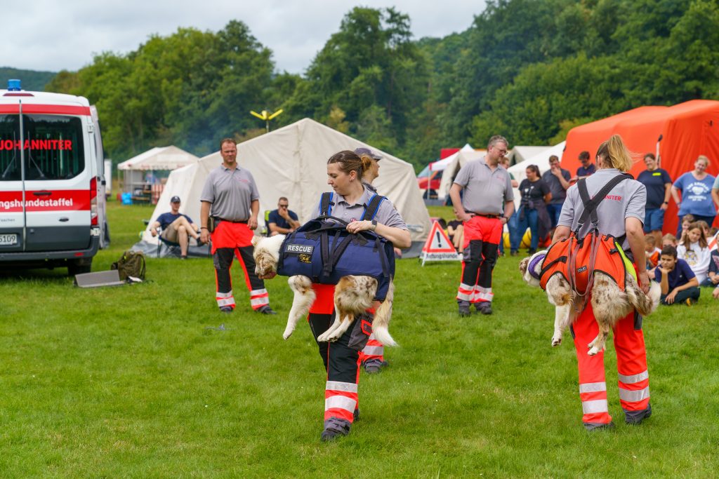 Für die Jugendfeuerwehr gab es zum Mittag noch eine Überraschung. Die Rettungshundestaffel der Johanniter aus Aachen / Düren / Heinsberg besuchte das Zeltlager und zeigte eine Show mit ihren Rettungshunden. Hier waren alle begeistert und freuten sich im Anschluss die Hunde streicheln zu dürfen. Ein besonderer Dank geht hier an Norbert Schmahl, der diesen Besuch möglich gemacht hat. Hier sieht man wieder einmal mehr, wie wichtig und gut die Zusammenarbeit auch mit anderen Hilfsorganisationen ist. Nach dem Mittagessen ging es dann zum Minigolf, Schwimmen, sowie Basteln los. Der Abend wurde mit Grillspezialitäten ausklingen gelassen.